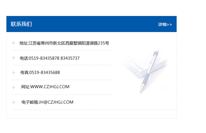 地址:常州市新北區友邦商務大廈1幢16、17層  電話:0519-85101652  傳真:0519-85112595  郵編:213022  網址:www.cz-jiayue_cn.flh8888.com  郵箱:xiajifengaa@163.com